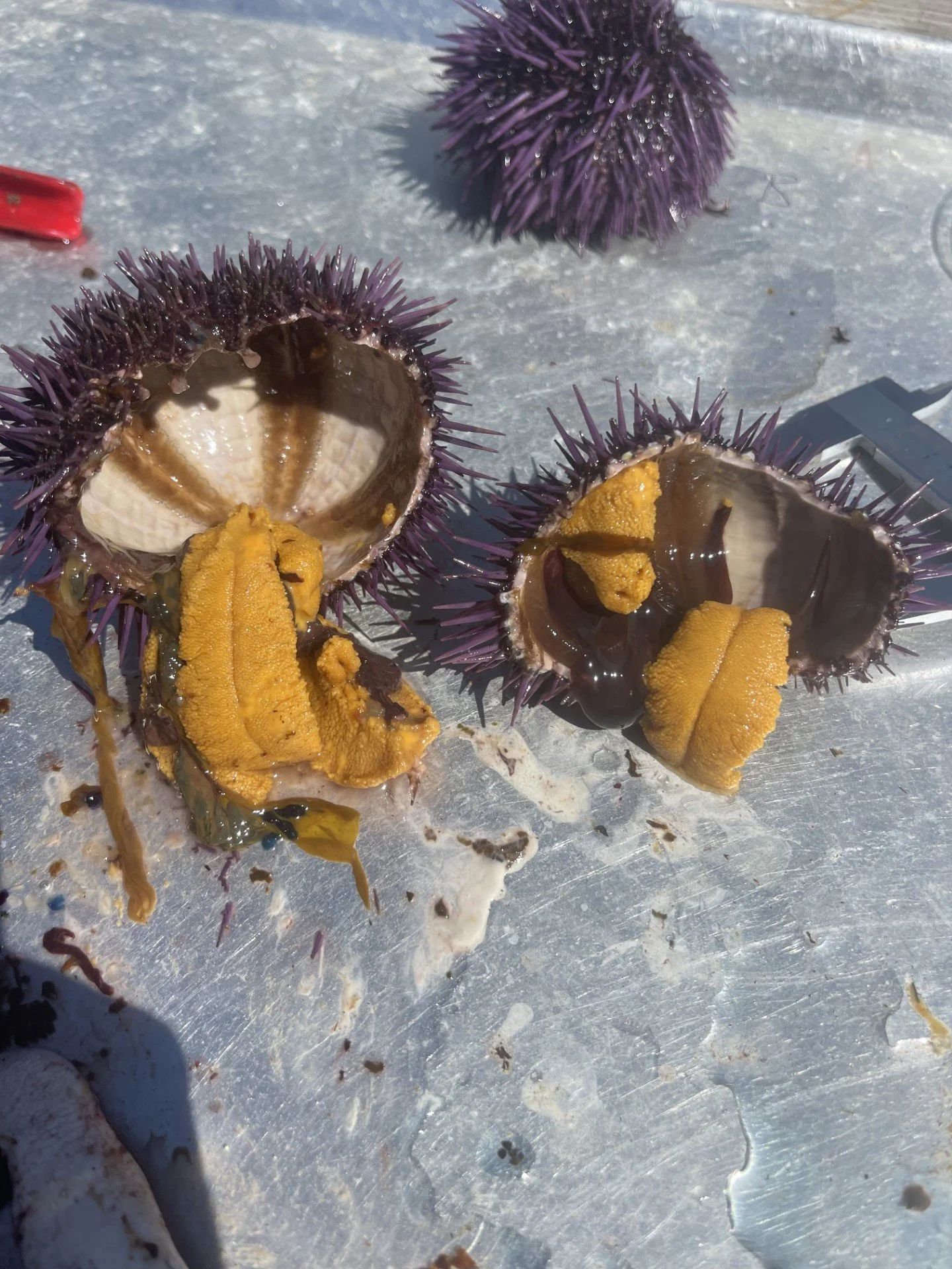 Economically incentivizing the harvest of wild purple urchins in aquaculture can help reduce the urchin population and restore kelp forests. However, the urchins in barrens have limited economic value due to their starved state. Aquaculture can help fatten the roe in the urchins and increase their value. To do this a team of researchers, urchin divers, aquaculture farmers, and community members have been working on developing diets optimized for urchin roe growth as well as determining the ideal culture conditions to increase the quality of the roe year-round. Together this research is hoped to provide needed technology and information to jumpstart urchin ranching aquaculture and support kelp recovery.